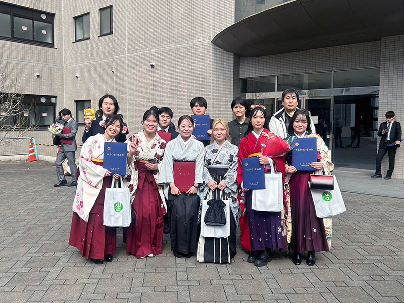 令和8年3月23日、午前10時からアスティ徳島にて令和7年度の卒業式・修了式が行われました。例年同様に、中庭で卒業生と修了生で記念撮影しました。夕刻には市内の居酒屋にて移動して、卒修了生の送別会を行いました。ご卒業・ご終了、誠におめでとうございます。今年度は研究室の改修時期にあたり、何かとご不便をお掛けして恐縮でしたが、次回、来室してくれる際にはリニューアルしていますので、是非、来てください。それでは皆さん、お元気でご活躍ください。また、お会いしましょう。
